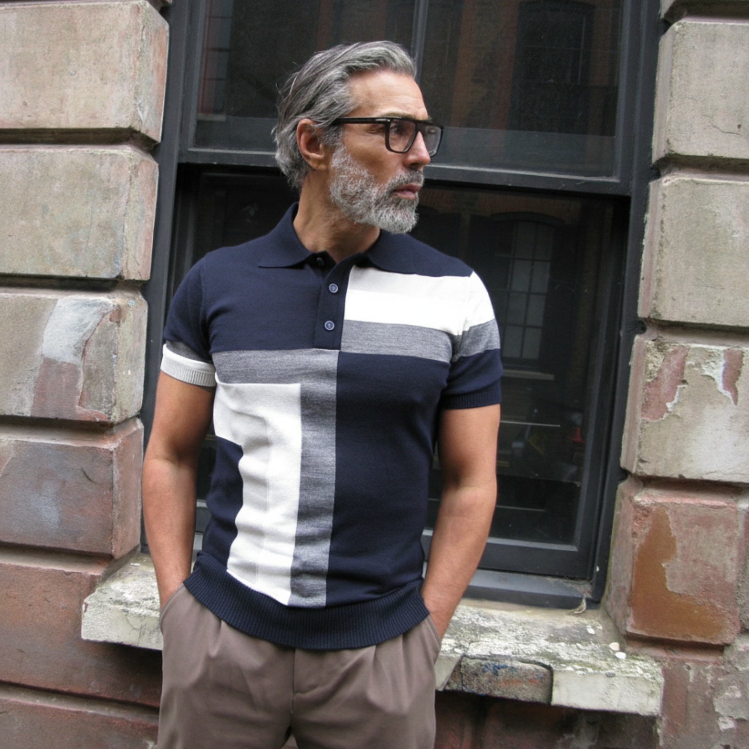 Hampstead - 3 Button Polo - Navy ecru grey